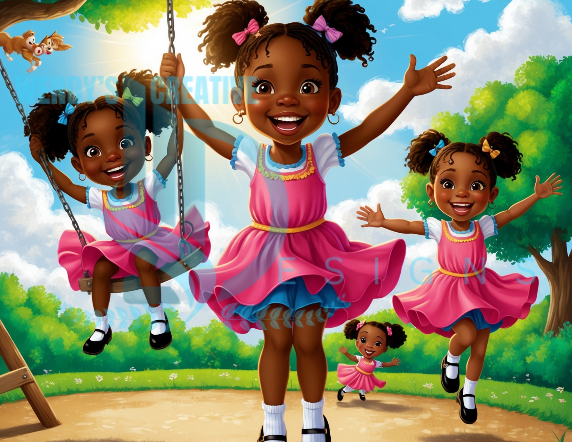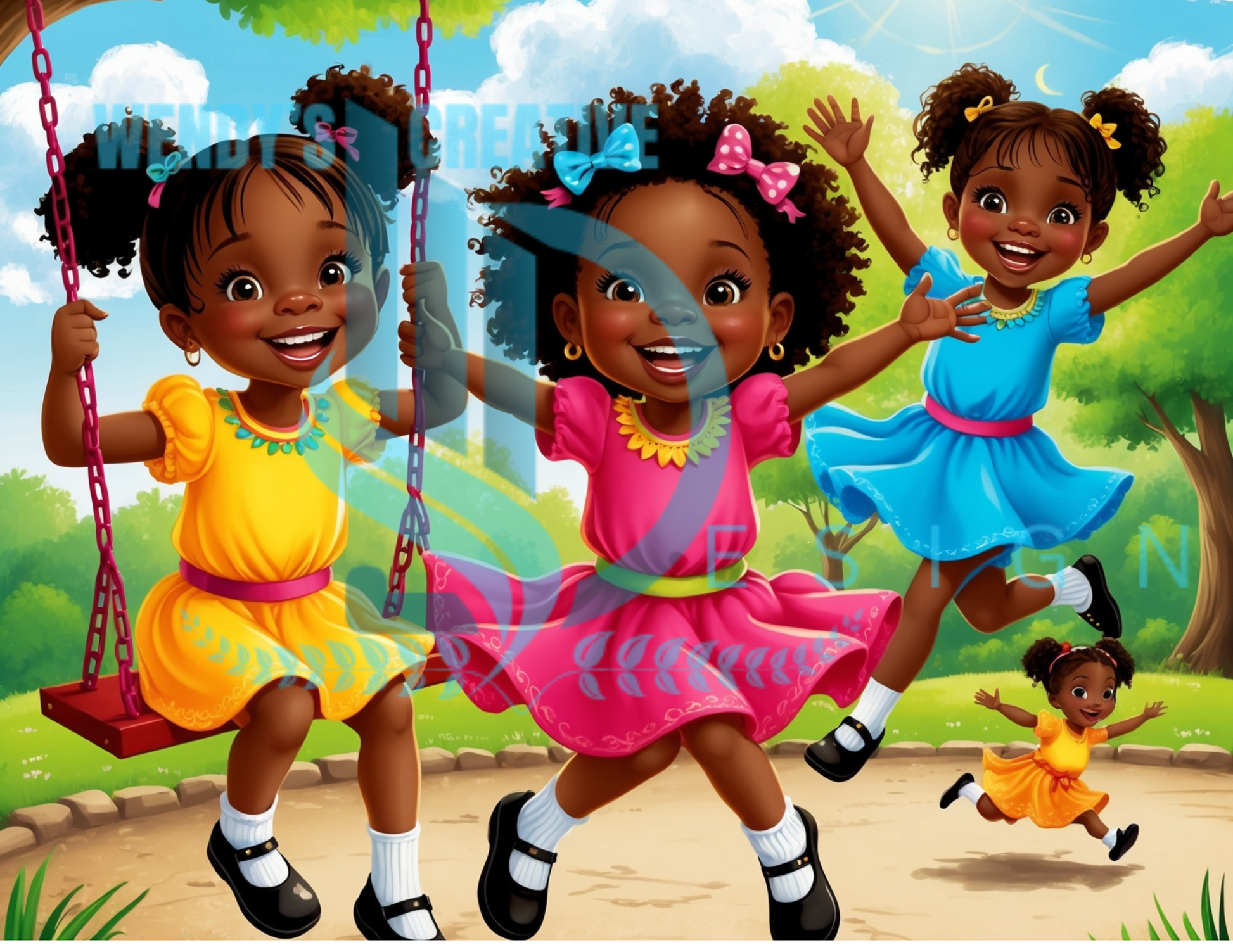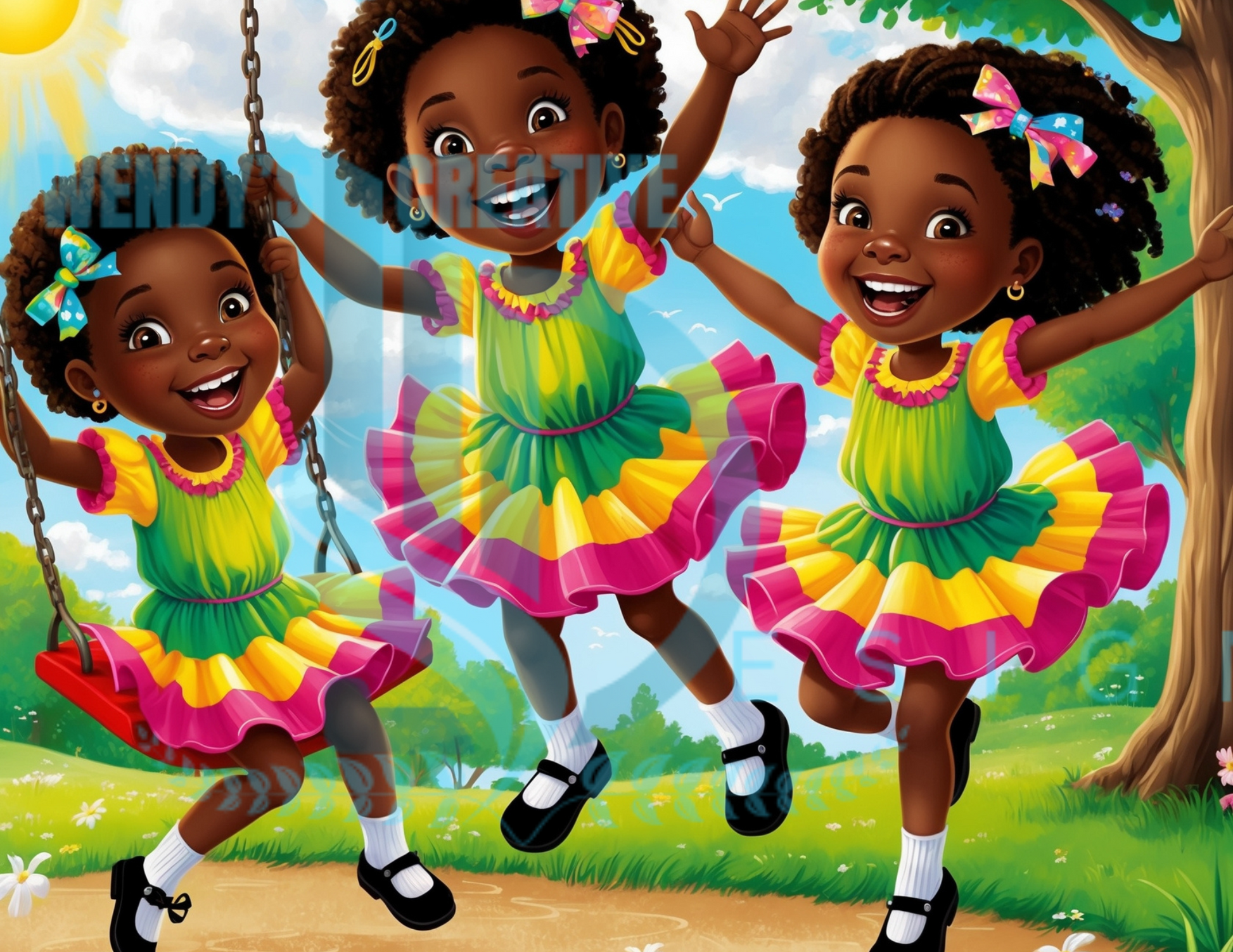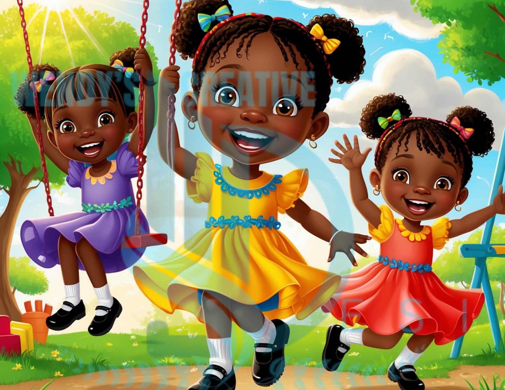 ๐ Digital Download 3 African American Kids Playing Art Collection โ Infinite Possibilities! ๐
